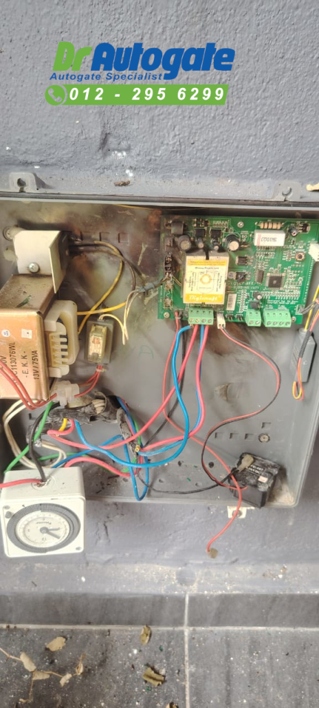 Hai semua. Tengoklah keadaan DCMoto GFM-925w customer di Kajang ini. Dari apa yang customer beritahu kami, ada banyak kerosakan pada DCMoto925w nya, dimana dcmoto autogate control board rosak terbakar, begitu juga dengan transformer telah rosak dan dcmoto autogate motor sebelah kanan tidak berfungsi lagi. Customer beritahu lagi, original installer DCMoto GFM-925w pun tak ada spare parts untuk dibaiki. Sekarang customer ingin dapatkan nasihat daripada autogate repairer specialist lain iaitu Dr Autogate.