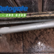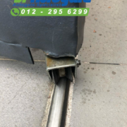 Tengok pada gambar di hantar oleh customer di Shah Alam, setiap kali auto gate dibuka gate bottom wheel akan melompat keluar daripada track, padahal customer baru sahaja tukar gate tahun lepas, roda bawah pun masih baru lagi, macam mana cepat sangat boleh ada masalah. Ini sebabnya tukang besi mereka guna roda yang berkualiti rendah, lepas itu mereka tidak adjust bergerakkan autogate, memnag tidak akan tahan lama. Jadi sekarang kami replace autogate roller tersebut dengan yang high quality autogate roller dan adjus semula lebel dan alignment arm autogate motor supaya gate dan autogate bergerak lancar.